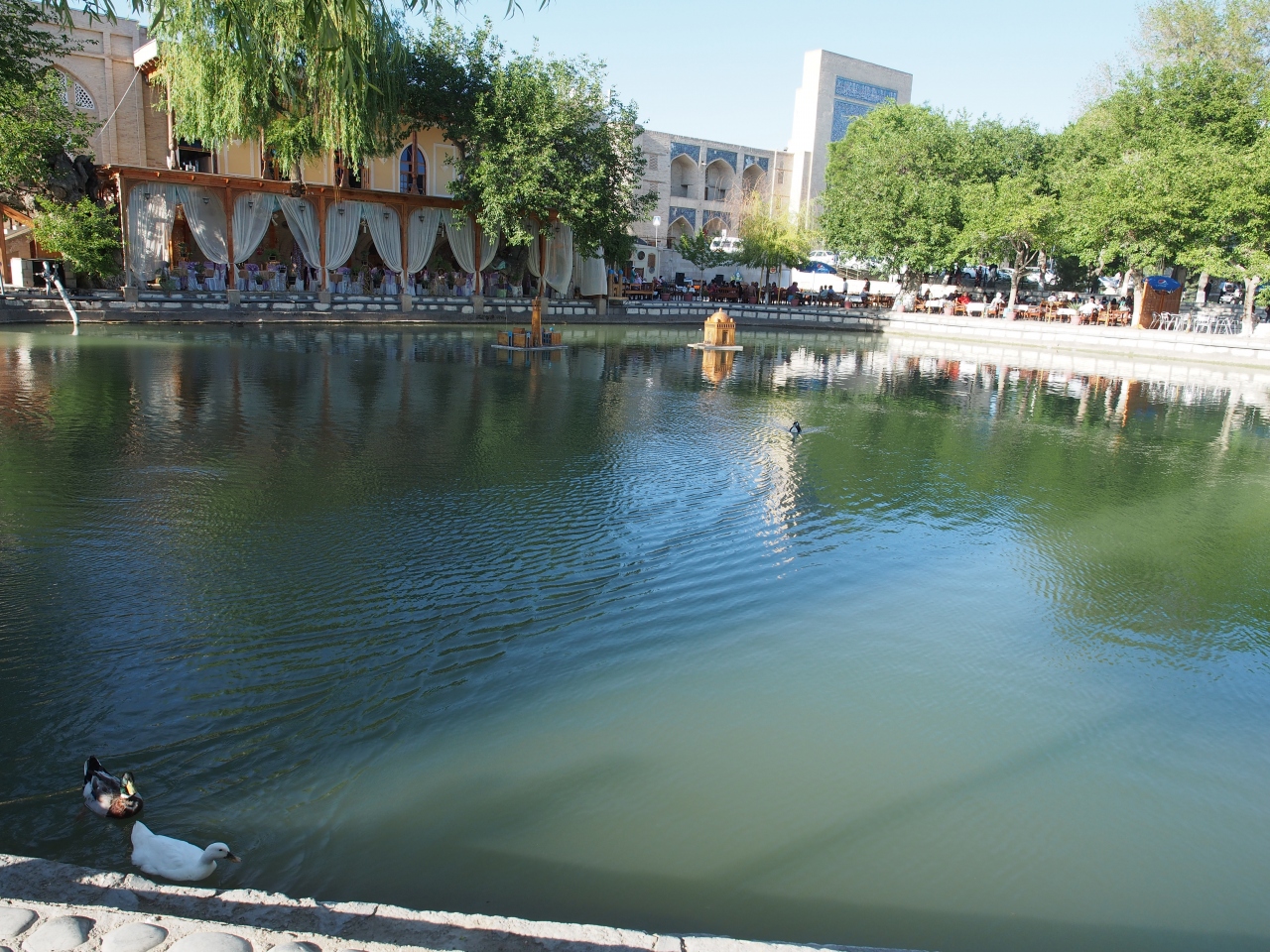 ブハラの中心になっている池です。「ラビハウズ」といえば、現地のバスやタクシーでも通じるので、基点として覚えておくといい場所です。
