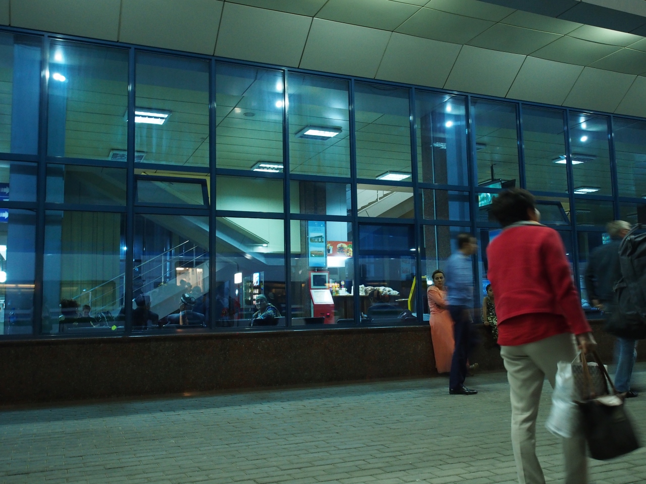 バスを利用して中心部に行こうとしたのですが、誰に聞いても乗り場がわからないと言われてしまい、結局タクシーを利用しました。ウズベキスタンの他の空港も同様ですが、あんまり案内表示などがない空港でした。