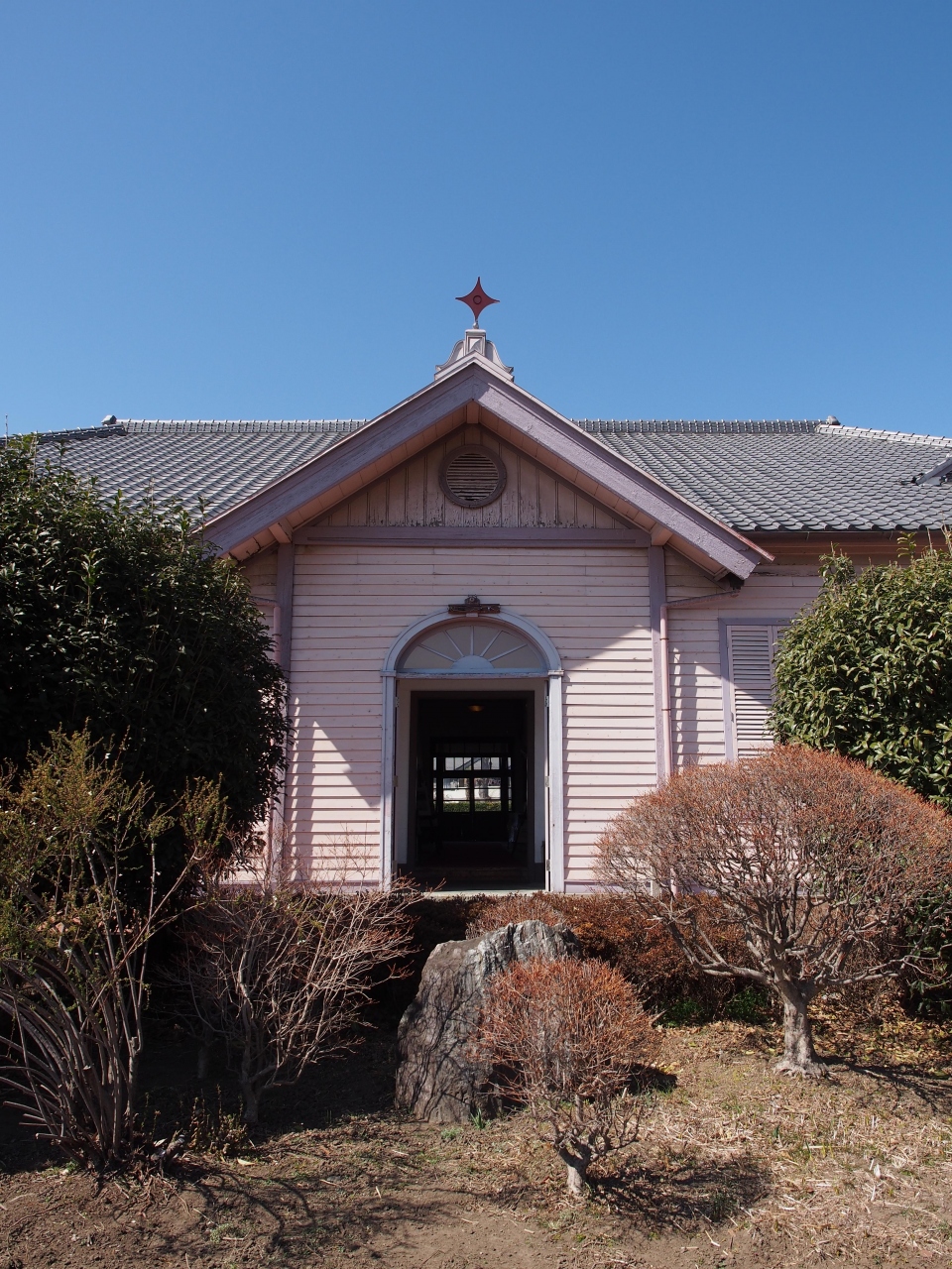 群馬大学の構内にある洋館建築です。桐生天満宮の近くにある門から入り、守衛さんに一声かけて構内に入れていただきます。現在、改修工事中ということで内部は見られませんでしたが、かなり立派な大きな建物でした。また、この門前にある守衛所が記念会館と似た雰囲気の可愛らしい造りになっているので必見です。