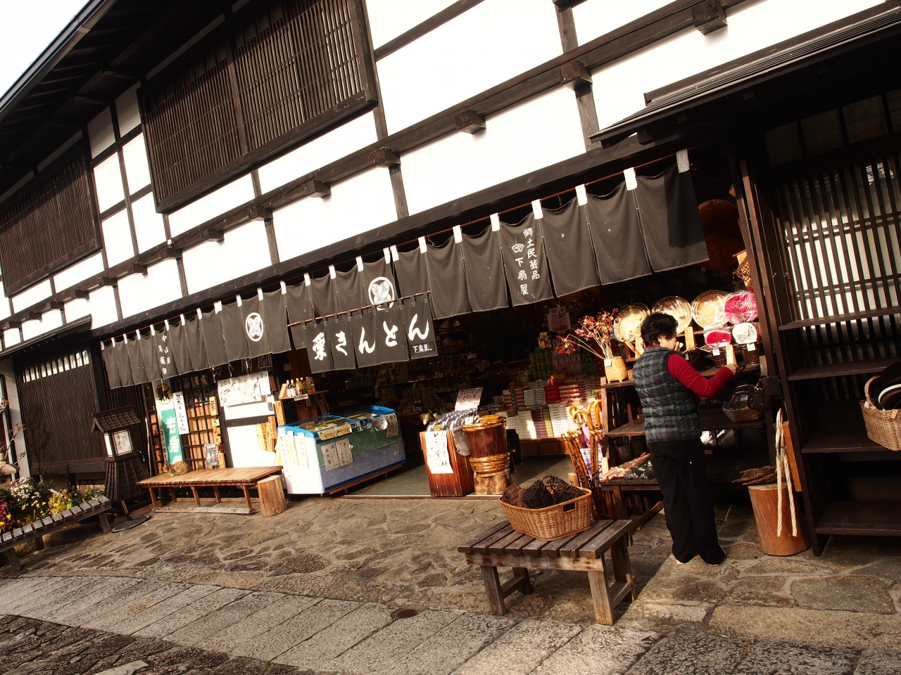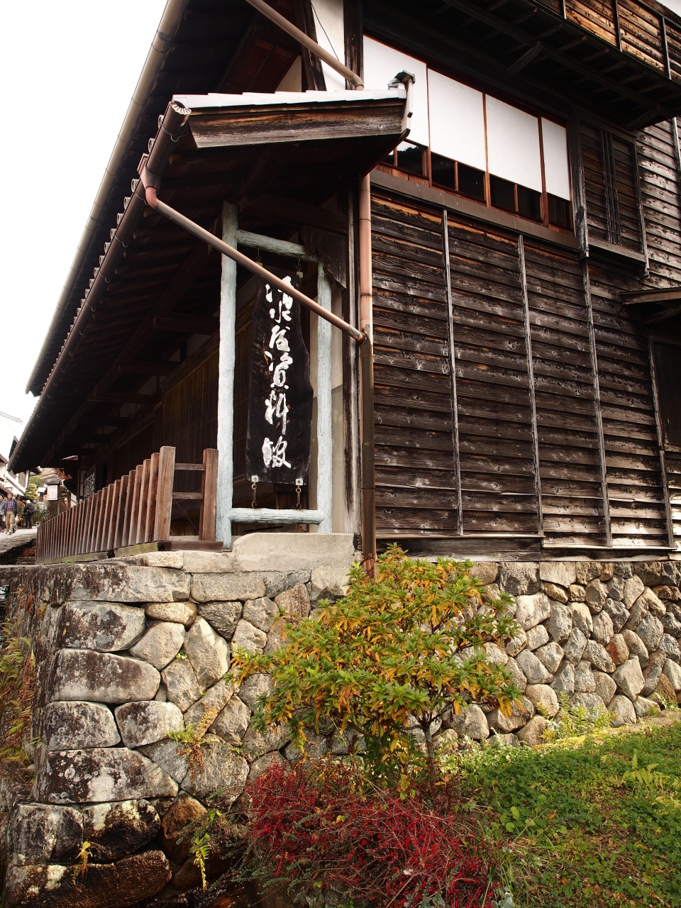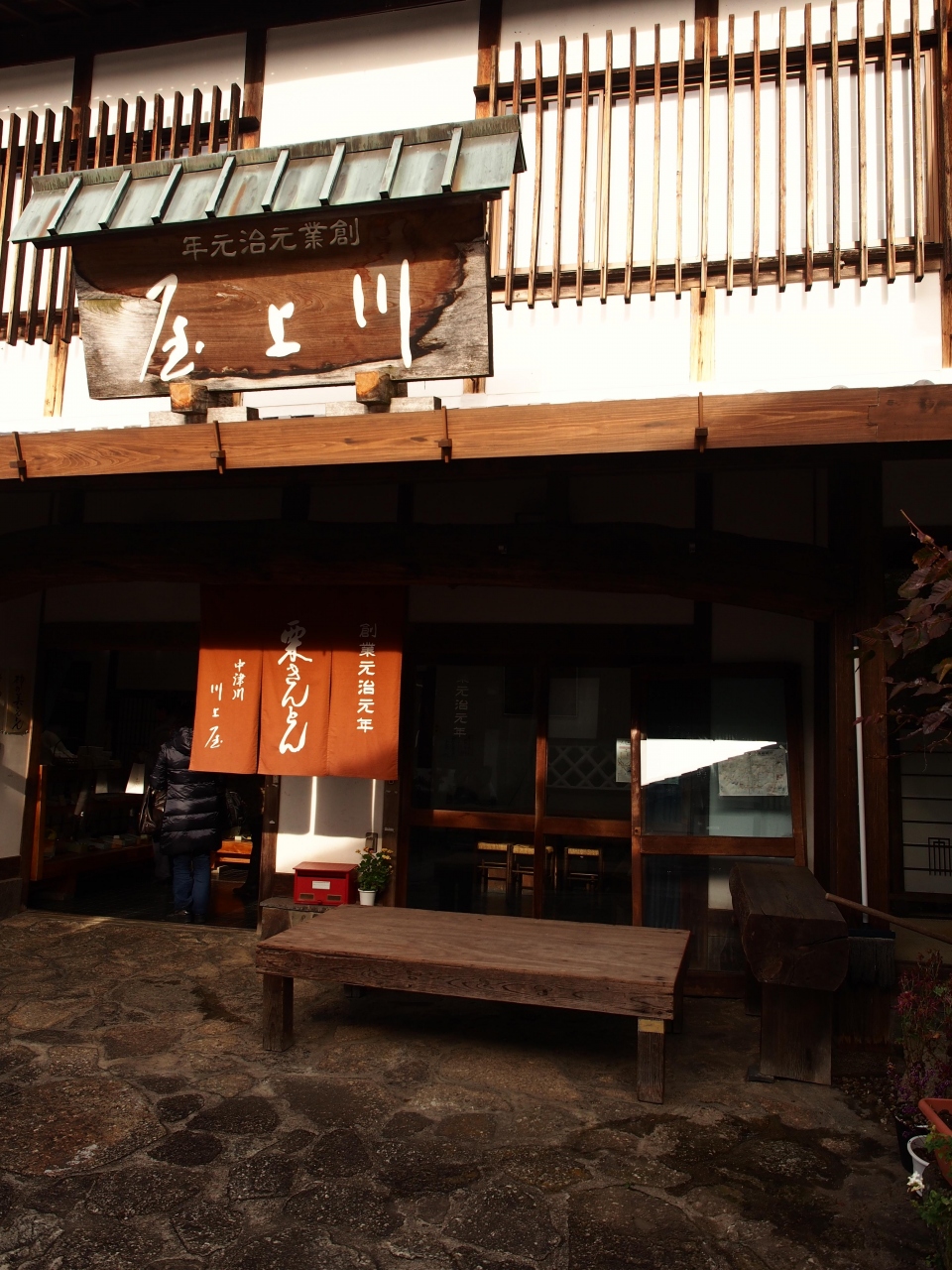 馬籠宿の中ほどにあるおやきのお店です。食べ歩きも、イートインもできます。