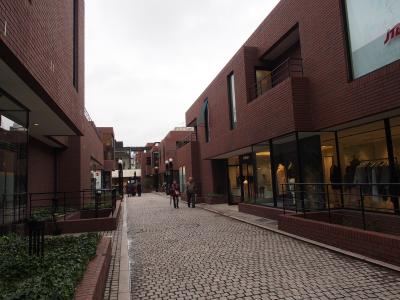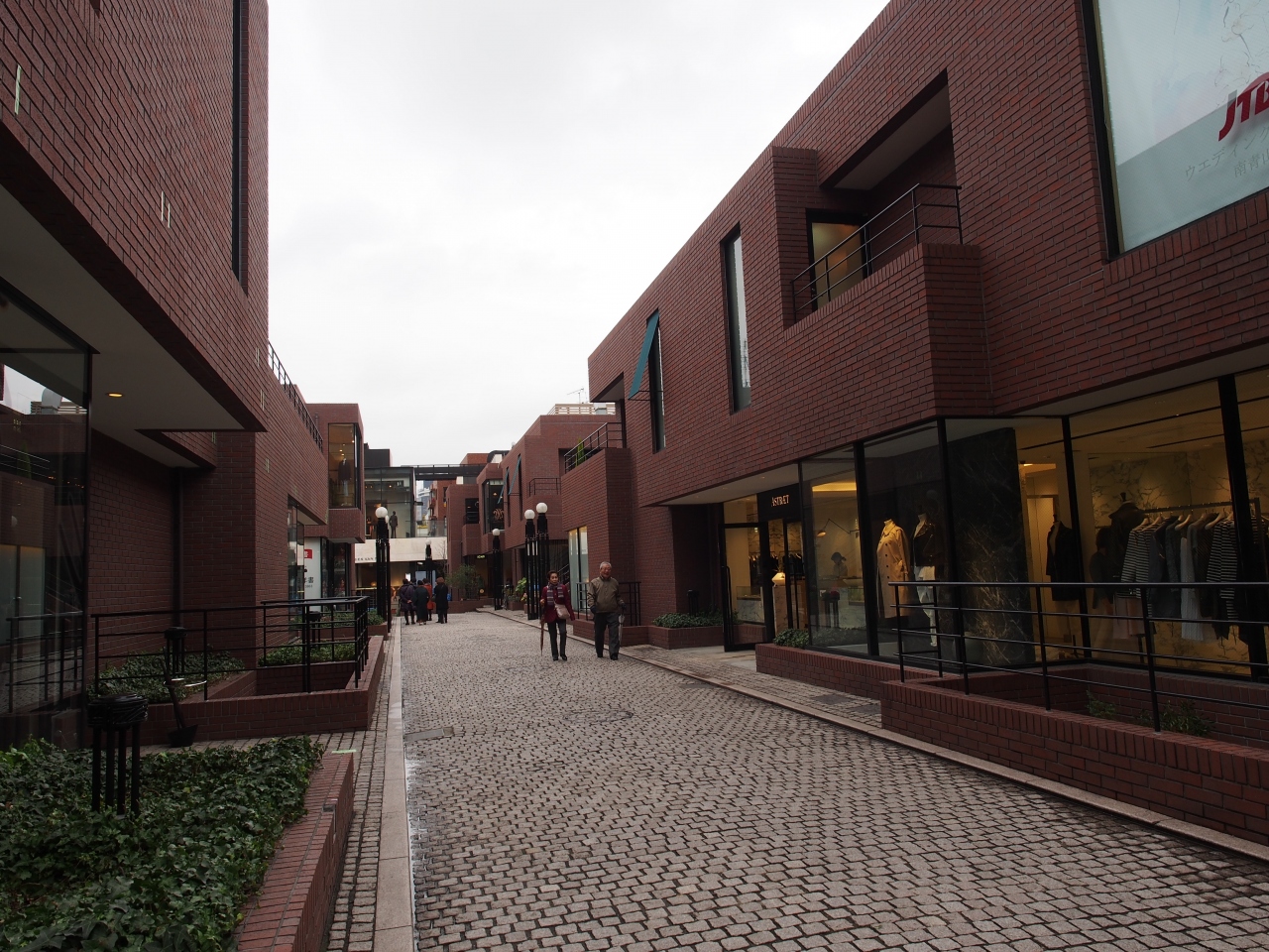 趣のあるレンガ風の建築が町のように並ぶ商業スペースで、衣料品店や旅行代理店などが入っています。