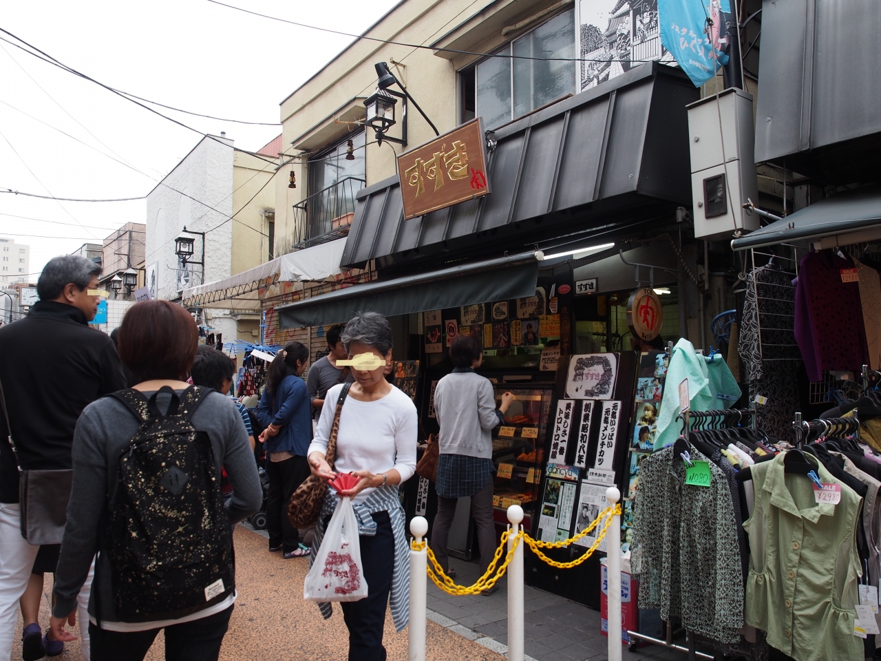 谷中銀座商店街の中でも人気のお店です。テレビにも何度も紹介されているらしく知名度が高いため、時間帯によっては行列ができていました。