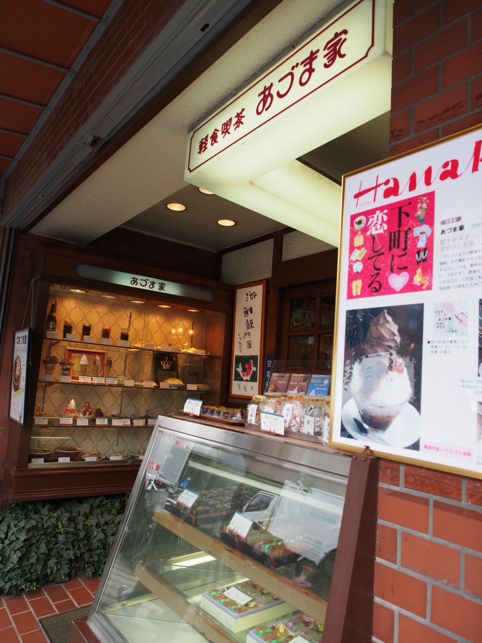 通りの中でもひときわ目を引くのが、そのレトロな外観。看板建築風?というのでしょうか、屋根のあたりの意匠などが現代では見られないかたちになっていて、すごく雰囲気があってすてきでした。