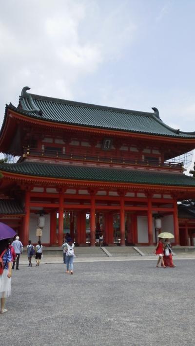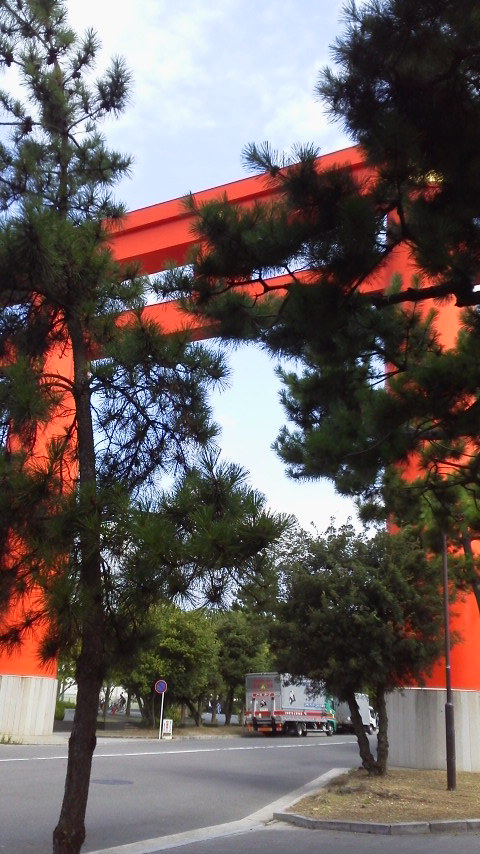 平安神宮の大鳥居、ほとんど京都市美術館の前にどーんとそびえ立っています。かなり大きくて遠くからでも目を引きました。