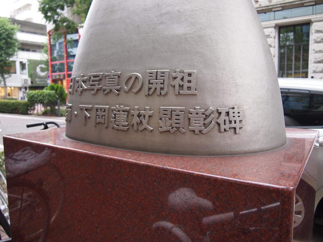 下岡蓮杖という写真家を記念した碑のようですが、写真の開祖というのはどうなんだろう・・・上野彦馬のほうが数段有名な気がするんですが。こういう碑って建てたもの勝ちなところがありますよね。