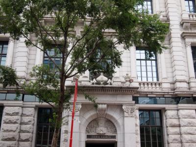 何気なく歩いていると案外街並みのとけこんでいて気づきませんが、よくよく見上げてみてみれば精緻なレリーフがあったり、非常に手の込んだザ・近代建築、という趣のあるレトロな外観の素晴らしいビルです。