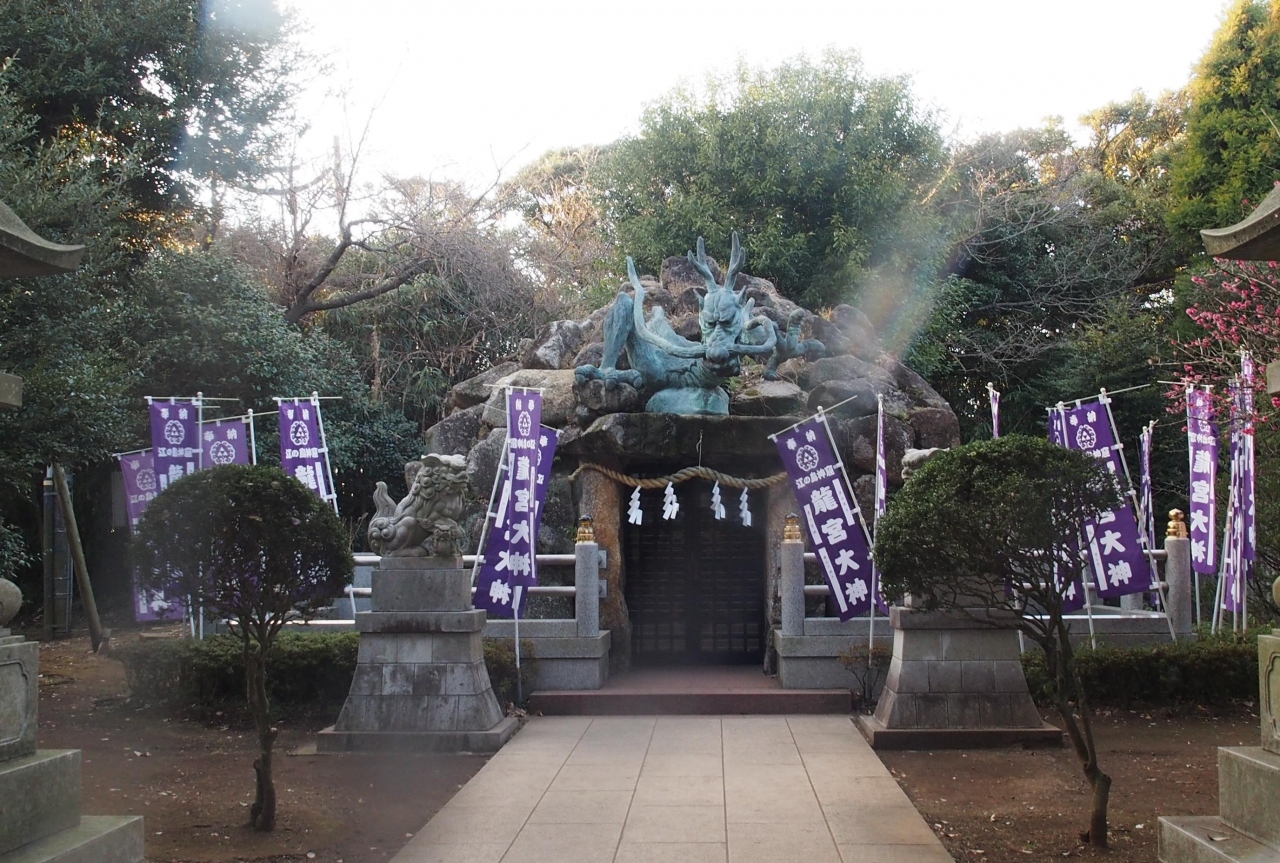 江ノ島のいちばん奥にある奥津宮の境内にある亀の形をした(ようにはあまり見えないのですが、まあそういうことで)石です。