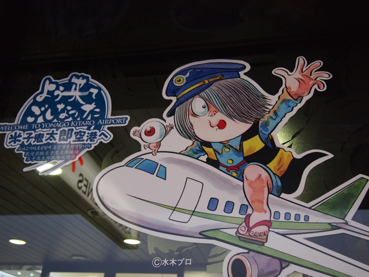 ゲゲゲの鬼太郎の作者、水木しげるさんの故郷である境港にあるということで、ゲゲゲの鬼太郎がフィーチャーされている空港です。