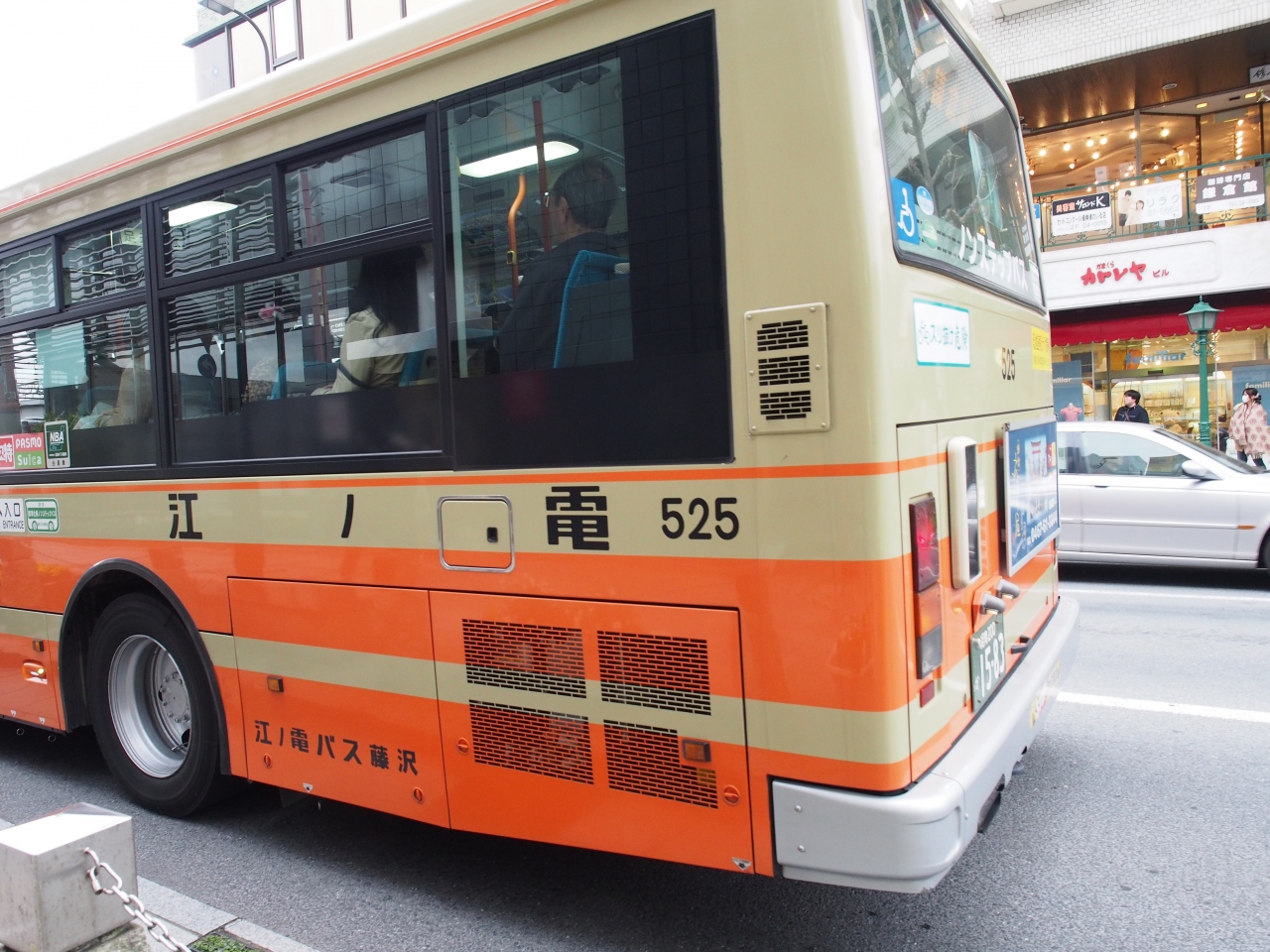 オレンジ色の車体がちょっとレトロでかわいらしく、鎌倉の街並みにもよく似合う路線バスです。
