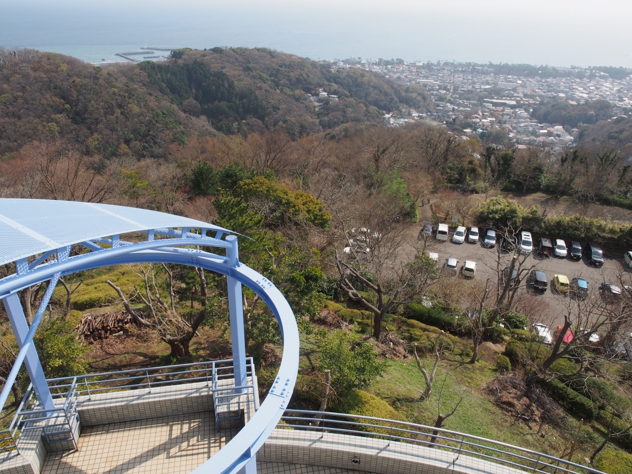 それほど高さはありませんがもともと小高い山の上に建っているので、湘南の海岸線から街並みまで大パノラマを見晴らすことができます。