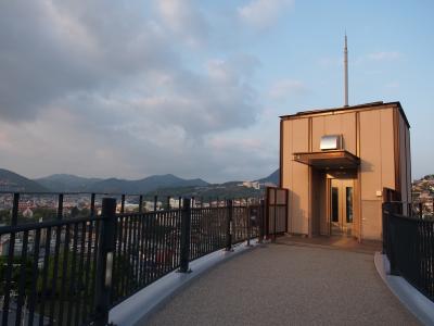途中途中の丸窓から長崎市の街並みをのぞき見できるようになっている設計が面白かったです。登り切った出口のところがちょっとした展望台的な場所になっていて、それほど高くはありませんが長崎市街を見晴らすことができます。