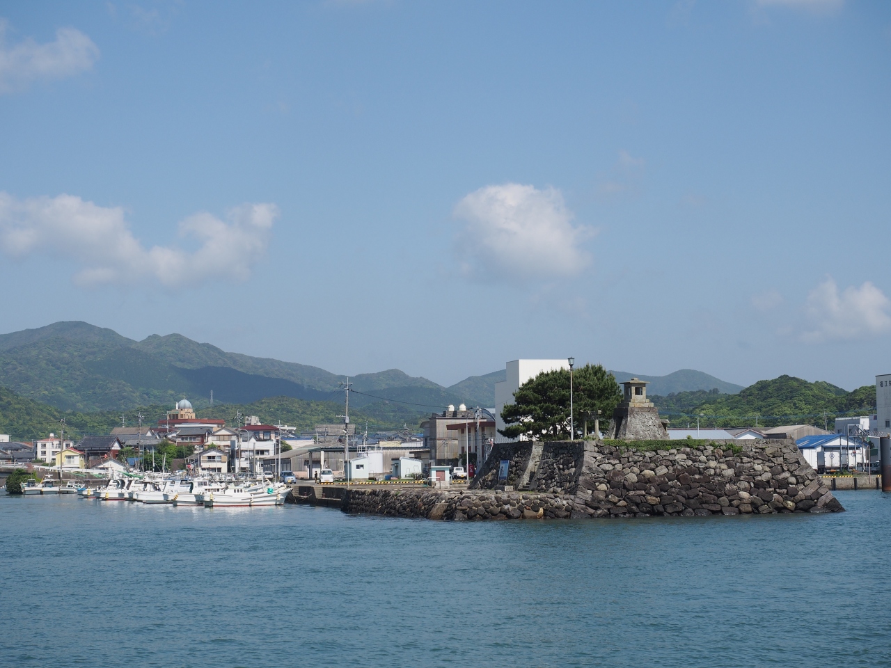 福江港から車で20分くらいでしょうか。溶岩が海に流れ込んでかたまった形の岸辺がおもしろい鐙瀬溶岩海岸のすぐわきにあります。