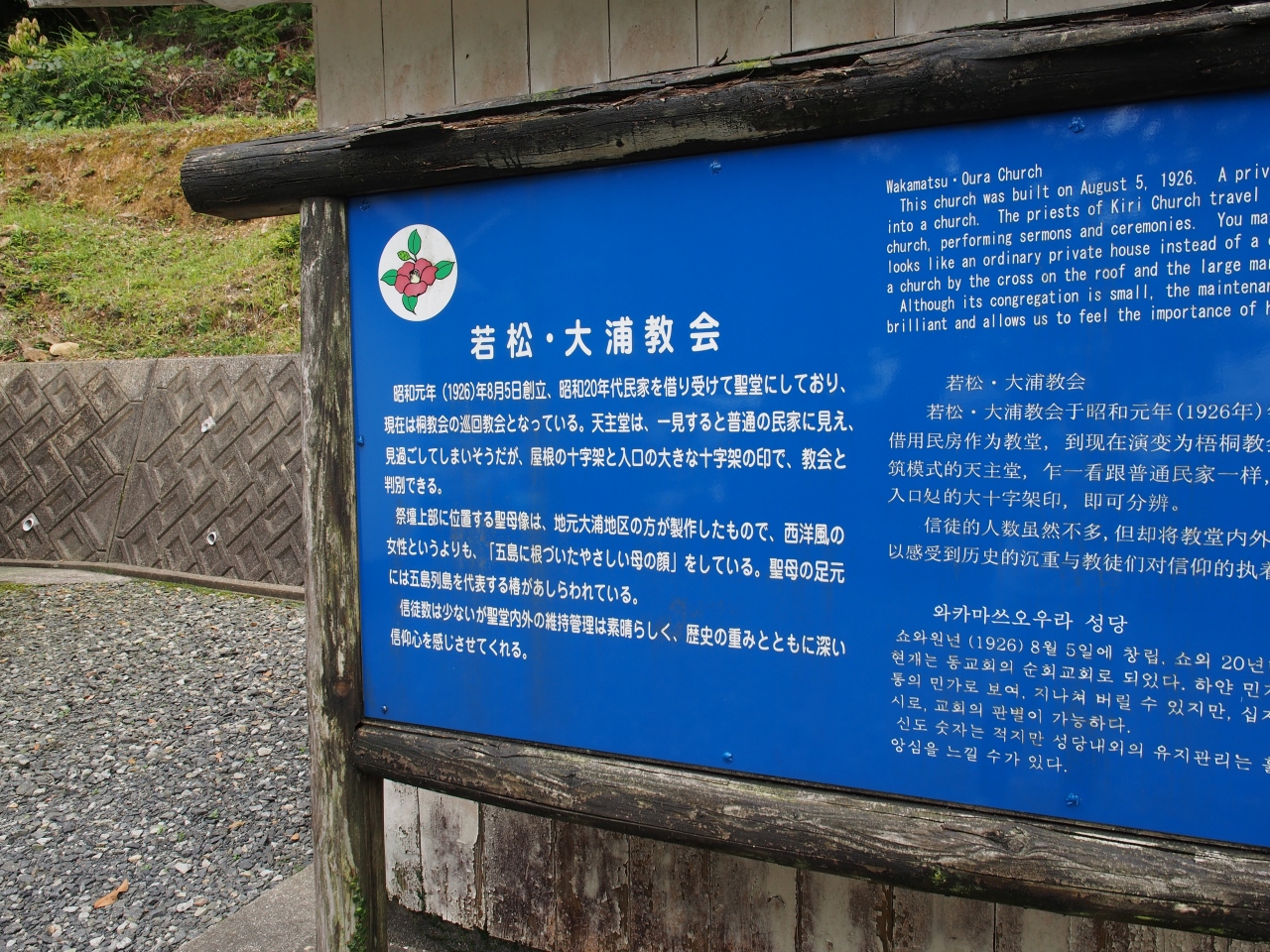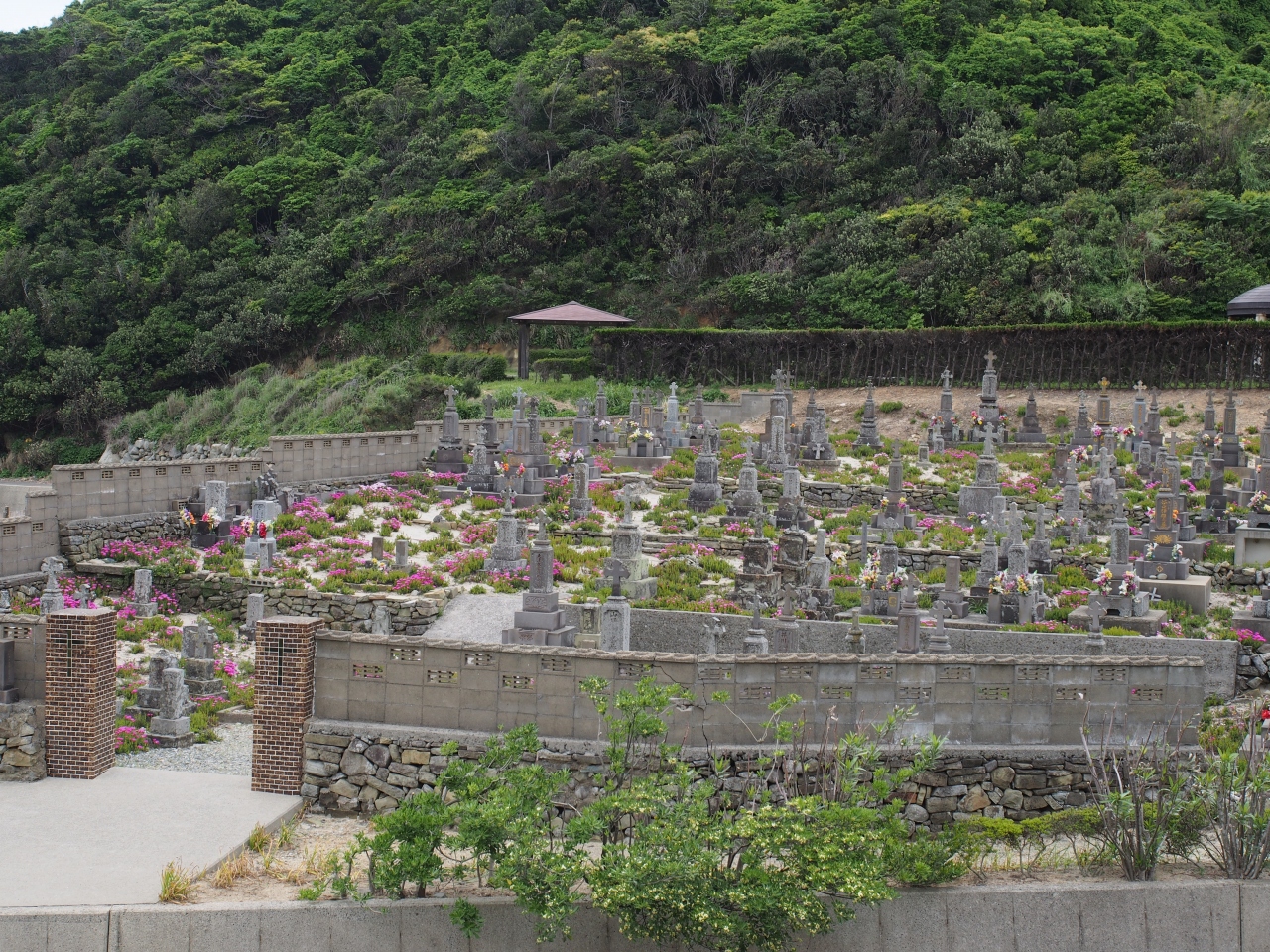 頭が島教会から海辺の方へ歩いて1分ほどのところにあるこじんまりとしたキリスト教徒の墓地です。苔むして古びた雰囲気の十字架の墓石がなんともいえない風情です。地元の人たちが苦心して建てられたという頭が島教会の来歴とあいまって厳粛な気持ちになります。