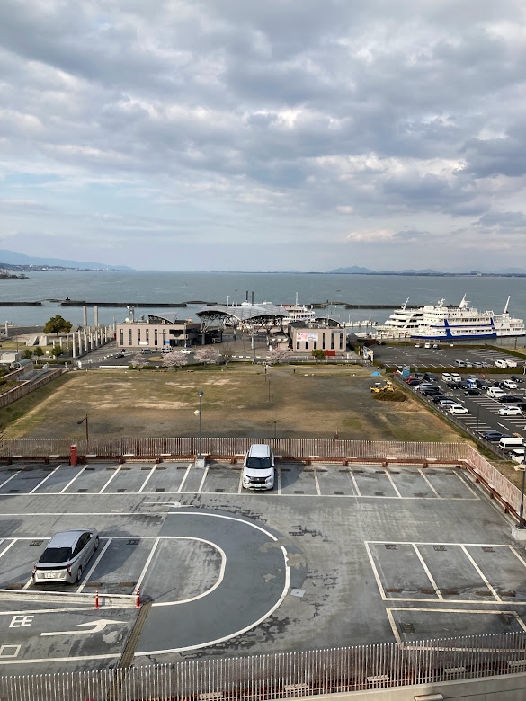 びわ湖浜大津駅のすぐ横にあるビジネスホテルです。改札まで1~2分という近さ。設備はかなり古く、部屋の鍵がカードキーではなくて、昭和な感じの本物の鍵(しかもそれを室内にさして回さないと電気がつかない)なのには驚きました。自分は最上階の10階の部屋だったので、写真のように琵琶湖が一望できる良い眺めで、すぐ横を通る線路の電車の音もあまり気になりませんでした。高層の部屋だといいけど、低層の部屋だともうちょっと評価が変わる気がします。