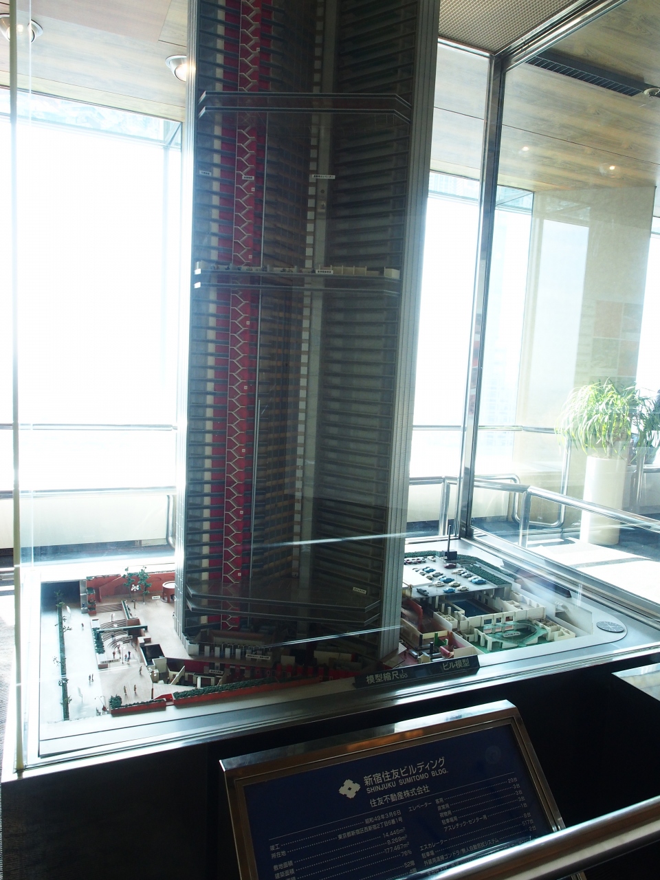 新宿にある高層ビルのうちのひとつで、無料の展望スポットがありますが、窓も見える範囲もそれほど大きくなく、新宿の無料展望所としては都庁からかなり劣ります。ただその肝心の都庁を「高層階で、外から間近に見る」ということができるので話のタネに寄ってみるのもいいかもしれません。ビルの大きな模型が置いてあるのが面白かったです。