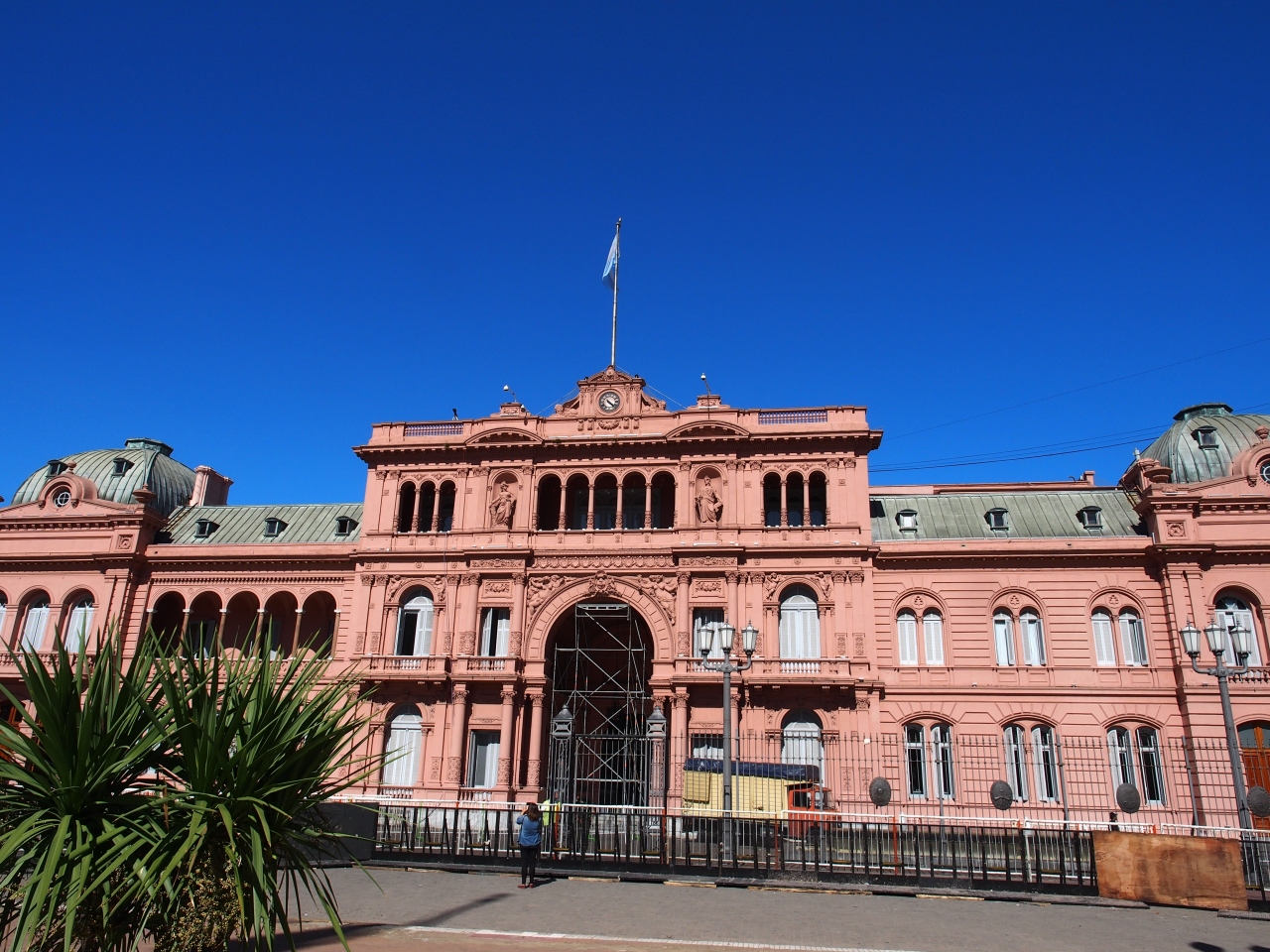 ピンク色の外観が愛らしい建物です。この色は牛の血と石灰を混ぜて塗ったという伝統の色らしいです。日中は普通なんですが、夜に行ってみてびっくり。ライトアップされていたんですがそれがかなりどぎついピンクで、ちょっと怪しい雰囲気になっていて、アルゼンチン人と日本人の感覚の違いを感じました。