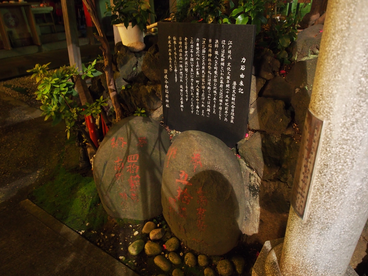 讃岐小白稲荷神社の境内にある石です。米袋10Kgくらいの大きさ?力石と言うと力比べをするための石と言うイメージがありますが、意外に小ぶりなので驚きました。でも米袋と違って自分で持とうとしたら腰が抜けてしまうんでしょうけど・・・。神社のお参りついでに見つけてください。