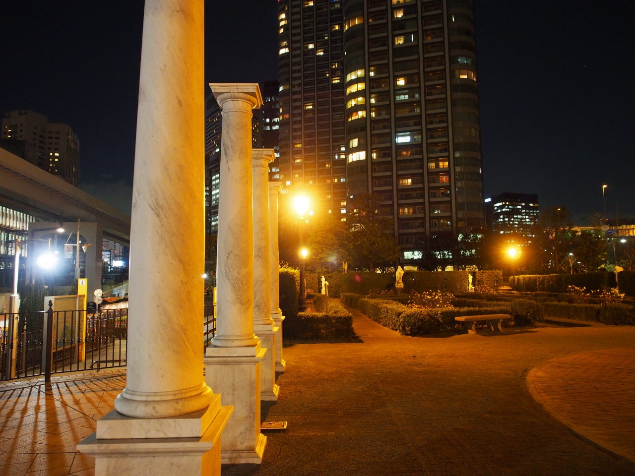 新橋駅と浜松町駅の間に突然現れるイタリアンな街並み。ホテルや普通の商業ビルがそれらしい姿で集まっているのが面白いです。本当に小さな一角ですがちょっとアミューズメントパークのような雰囲気があります。お店の数が少ないのが残念。