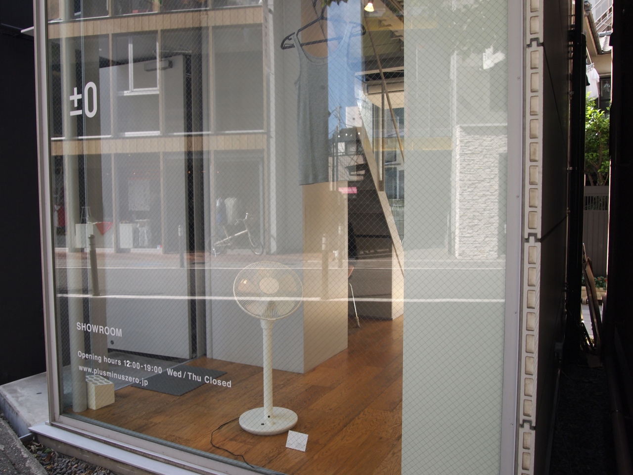 ガラス張りの小さめのスペースにさりげなく並ぶデザイン家電・・・・シンプルでスタイリッシュなデザイン家電をはじめとするグッズを扱っている+−0のショールームです。無駄のない空間でさすがのおしゃれさです。- 旅行時期