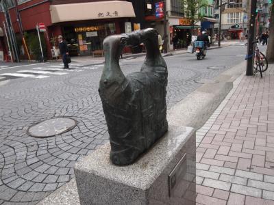 麻布十番の商店街の中に点在する「微笑みのモニュメント」シリーズの中ではテーマがわかりやすく、比較的親しみやすいモニュメントのひとつです。
