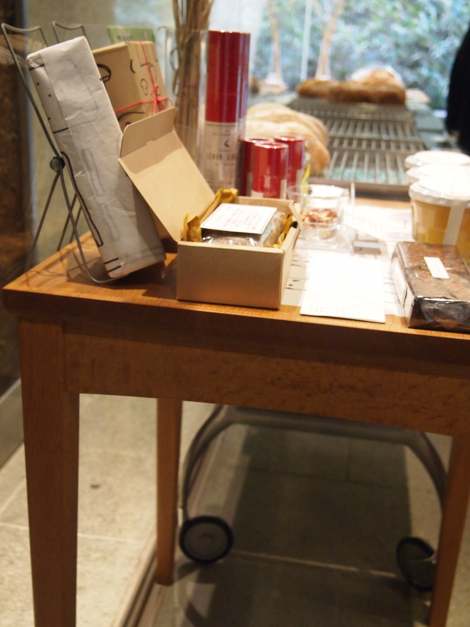 お店の人に頼んで好みのパンを取ってもらい、トレイを預けてひたすら会計を待つシステム。