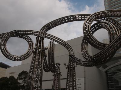 クイーンズスクエアのすぐ隣にあり、ちょうどみなとみらいの商業施設の中心部にあたるところにある銀色の金属製のモニュメントです。ジェットコースターのような形で、いったいなんなんだろう・・・とずっと謎でした。不思議なモニュメントですがみなとみらいの雰囲気になじんでいます。