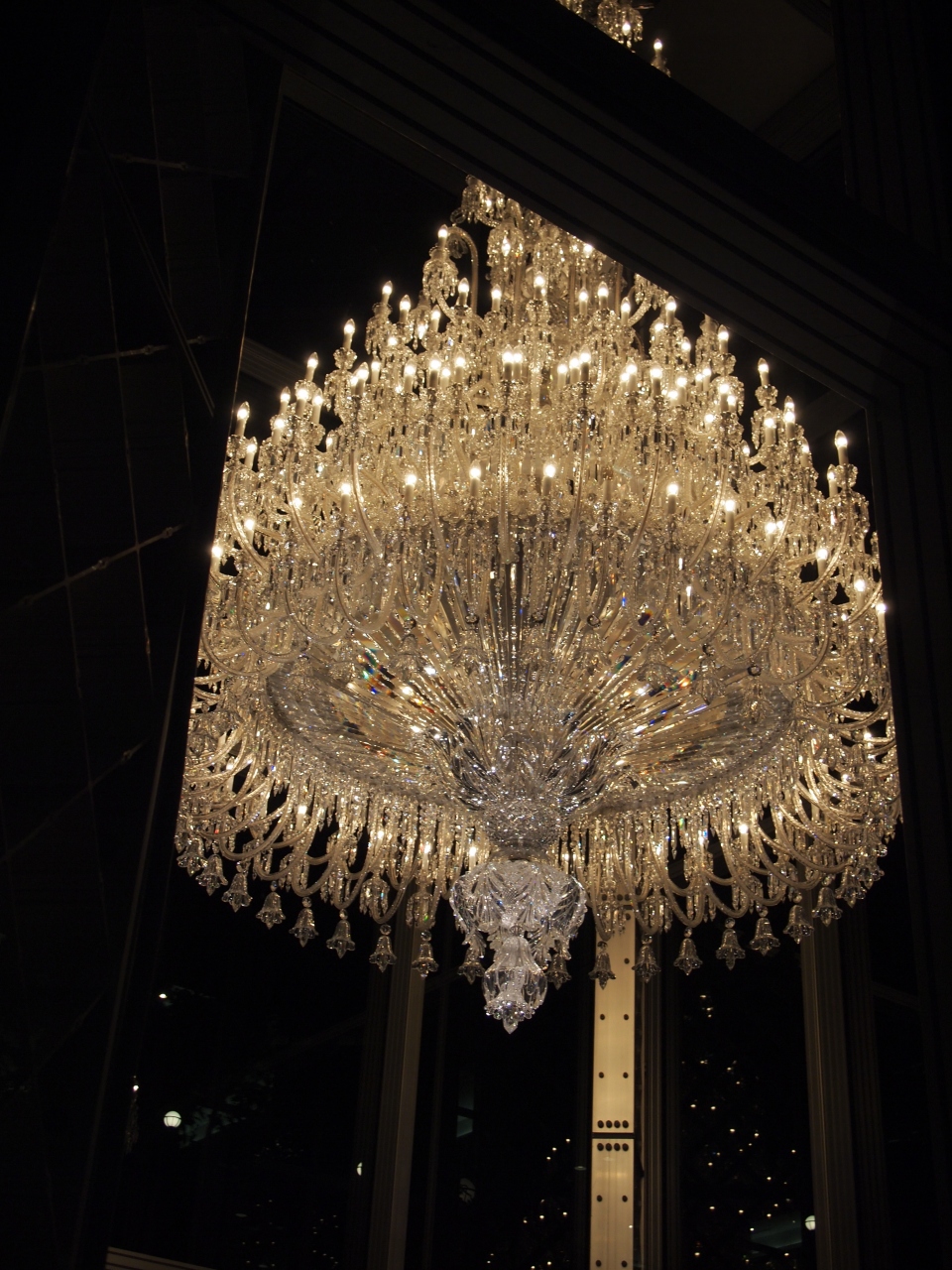 大きなクリスマスツリー、ライトアップされる並木、坂道に敷かれた赤いカーペット、そのカーペットを下った先にある巨大なバカラのクリスタルでできたシャンデリア、とゴージャスでロマンチックな要素が詰まっているイルミネーションです。重厚感を感じるイルミネーションです。