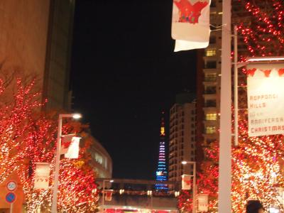 けやき坂の並木のイルミネーションがとても綺麗です。赤と白の2種類の色が時間を変えて点るんですが、どちらもすごく素敵。