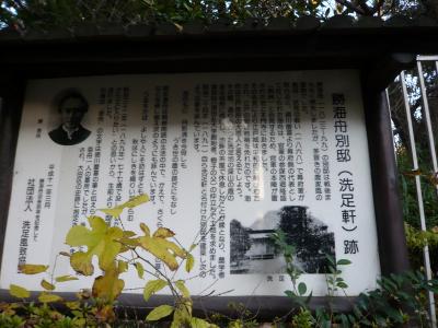 洗足池公園のすぐ隣にある、勝海舟の別邸跡です。跡、といっても跡地は残っておらず、ここにそういうものがあったよ、という由来を記した看板があるだけ。