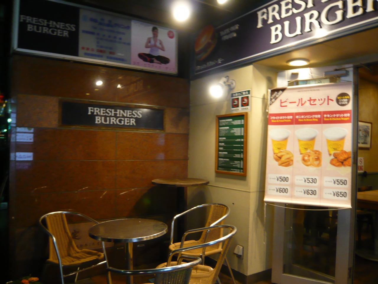 東急東横線、日比谷線の中目黒駅から徒歩1分くらいのところにあるフレッシュネスバーガーです。