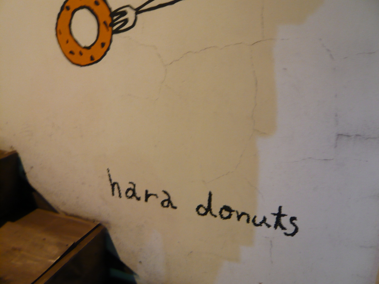 吉祥寺駅から徒歩15分くらい。中道通りをひたすら歩いて、お店の数もちょっと少なくなってきたかなぁという頃に左手側にあります。壁にかわいいドーナッツの絵が描いてあるのですぐにわかります。
