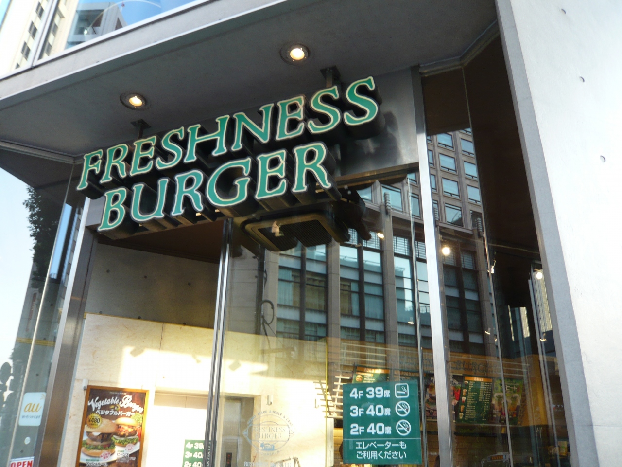東京メトロ日比谷駅から徒歩すぐ、晴海通り沿いに建つフレッシュネスバーガーです。