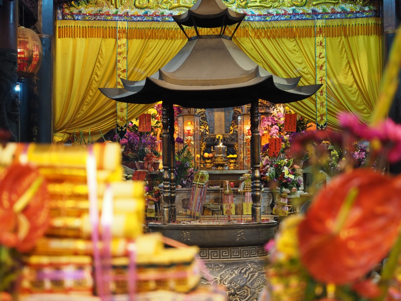 神農街の道端にぽつんとある小さな廟です。ぼんやりしていると通り過ぎてしまいそうな小ささですが、色とりどりの切り紙で飾られていて、街の雰囲気にあってとてもフォトジェニックな場所でした。街歩きと一緒にお参りするといいと思います。