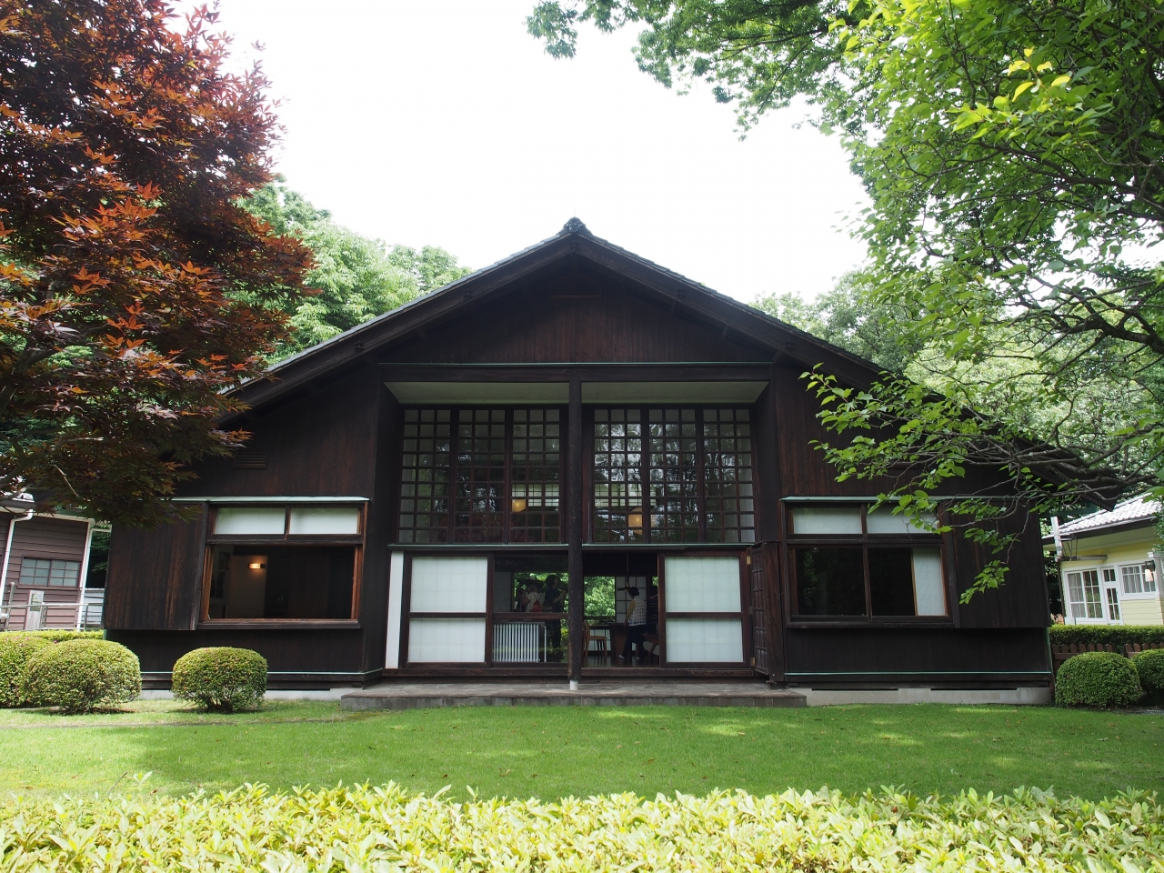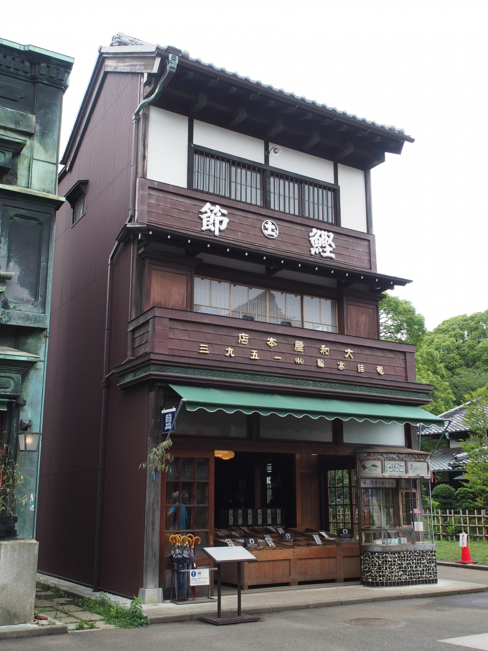 江戸東京たてもの園内に移築保存されている建物のうちのひとつです。派手で凝った意匠のある看板建築と比べると木造の商店建築は地味で目立たないんですが、中に入ると、当時商っていた和傘が並べられていてそれがすごく綺麗でした。外国の人とかが喜びそうです。