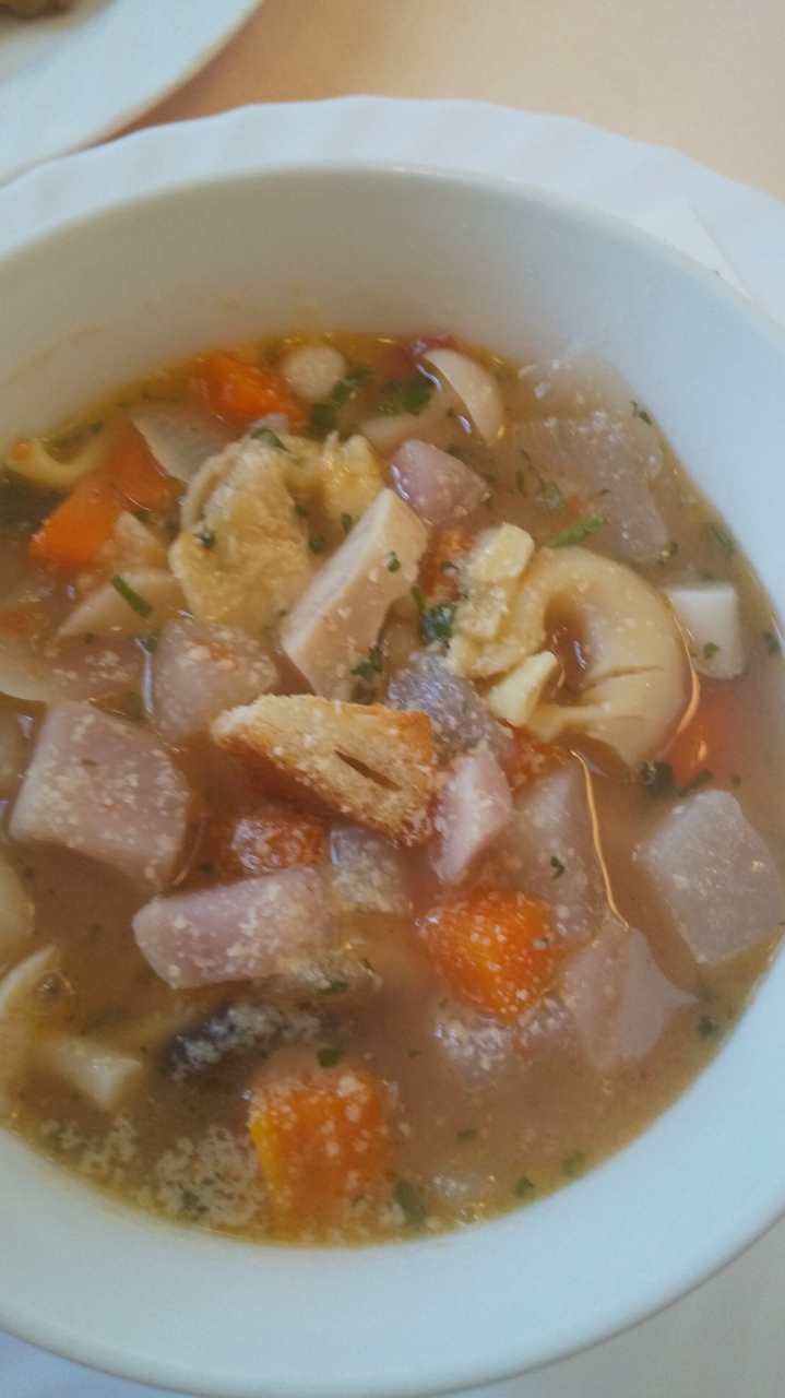 スープ又は前菜。メインは魚か肉を選択。パン。デザート、コーヒーで税込み1500円でした。予約をオススメします。- 旅行時期