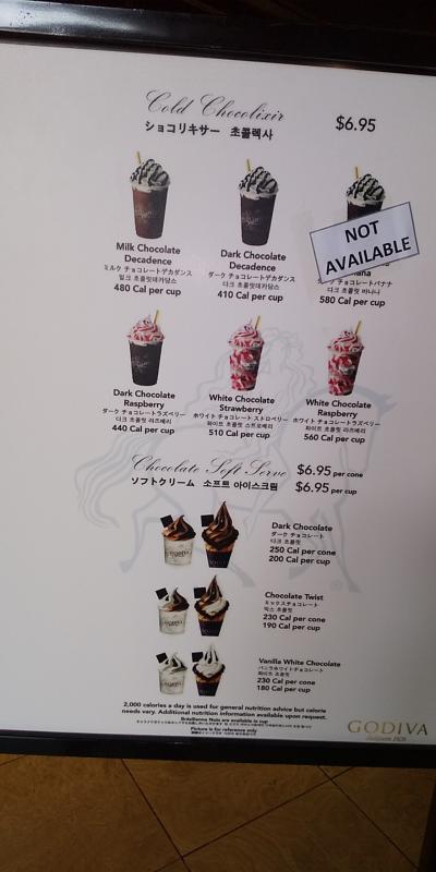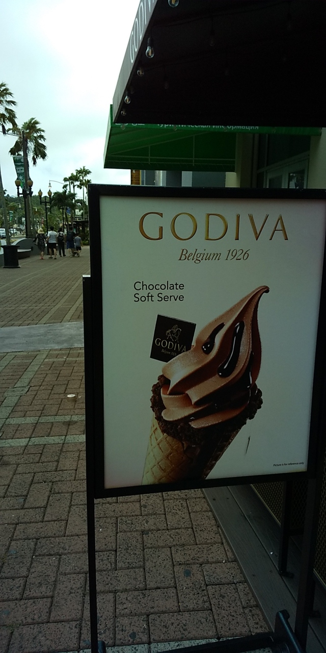 アウトリガーホテルからすぐ。ゴディバのチョコレートソフトクリーム購入。買って直ぐにだらだら溶け始めますからコーンよりはカップでかった方が良いです。一つ6~7ドルですから高級アイスですが食べる価値はあります。テーブルが3つくらいあり店内でも食べられます。