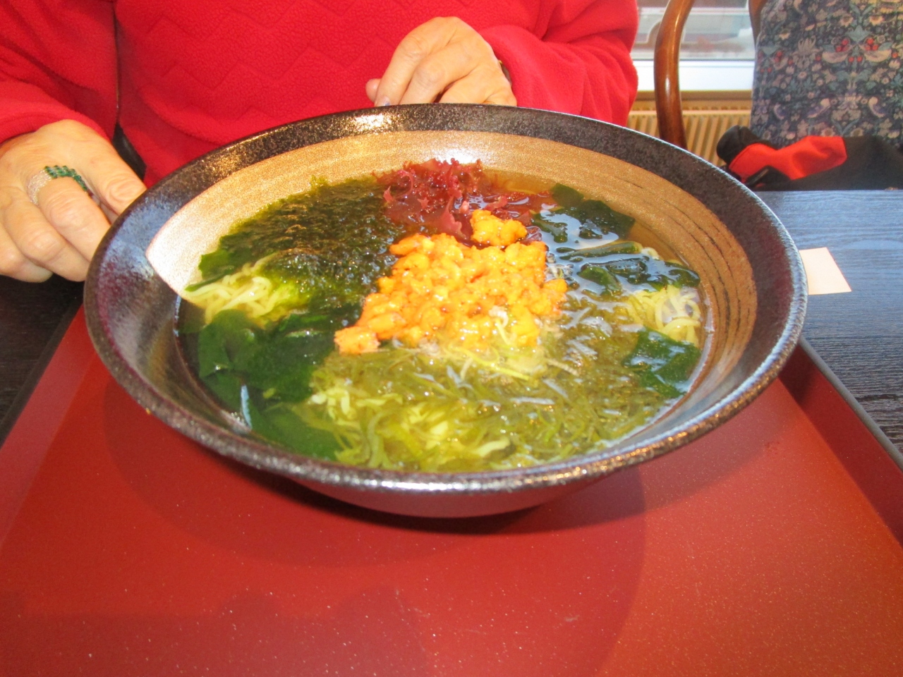 海鮮磯ラーメン。パスタセットを頼みましたがパスタセットにはサラダあんどスープ&メインのパスタで1000円超え。コーヒーがつかないでこの値段は高い。味も普通。