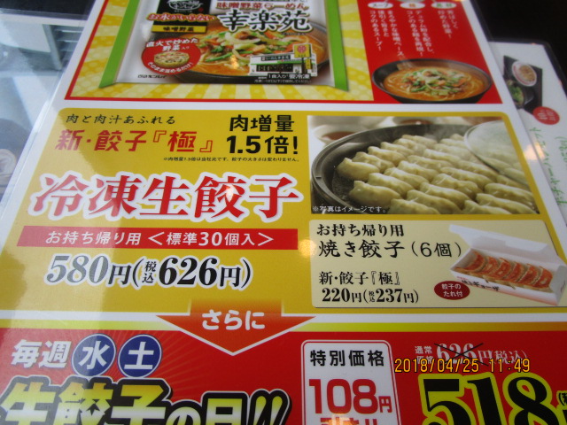 水曜日と土曜日はは持ち帰りの冷凍餃子30個入りが518円で買えるのもうれしいですね- 旅行時期