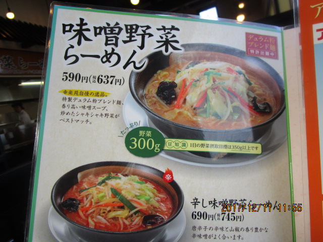 いつもの醤油ラーメンではなく店員さんの勧める「野菜たっぷりの味噌ラーメン」を食べてみました。