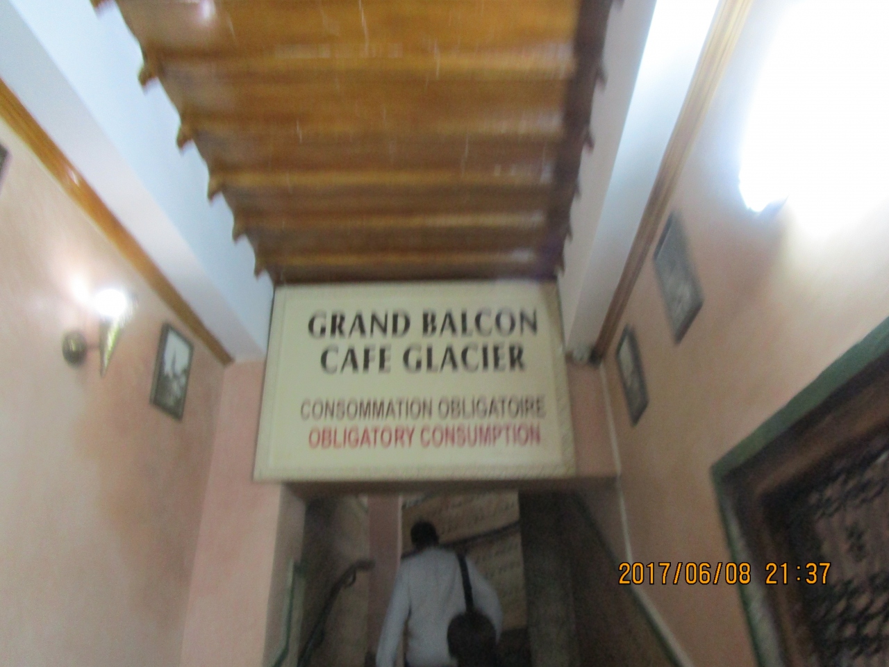 夜、マラケシュの「ジャマエルフナ広場」を見下ろすカフェの2階でティータイム。