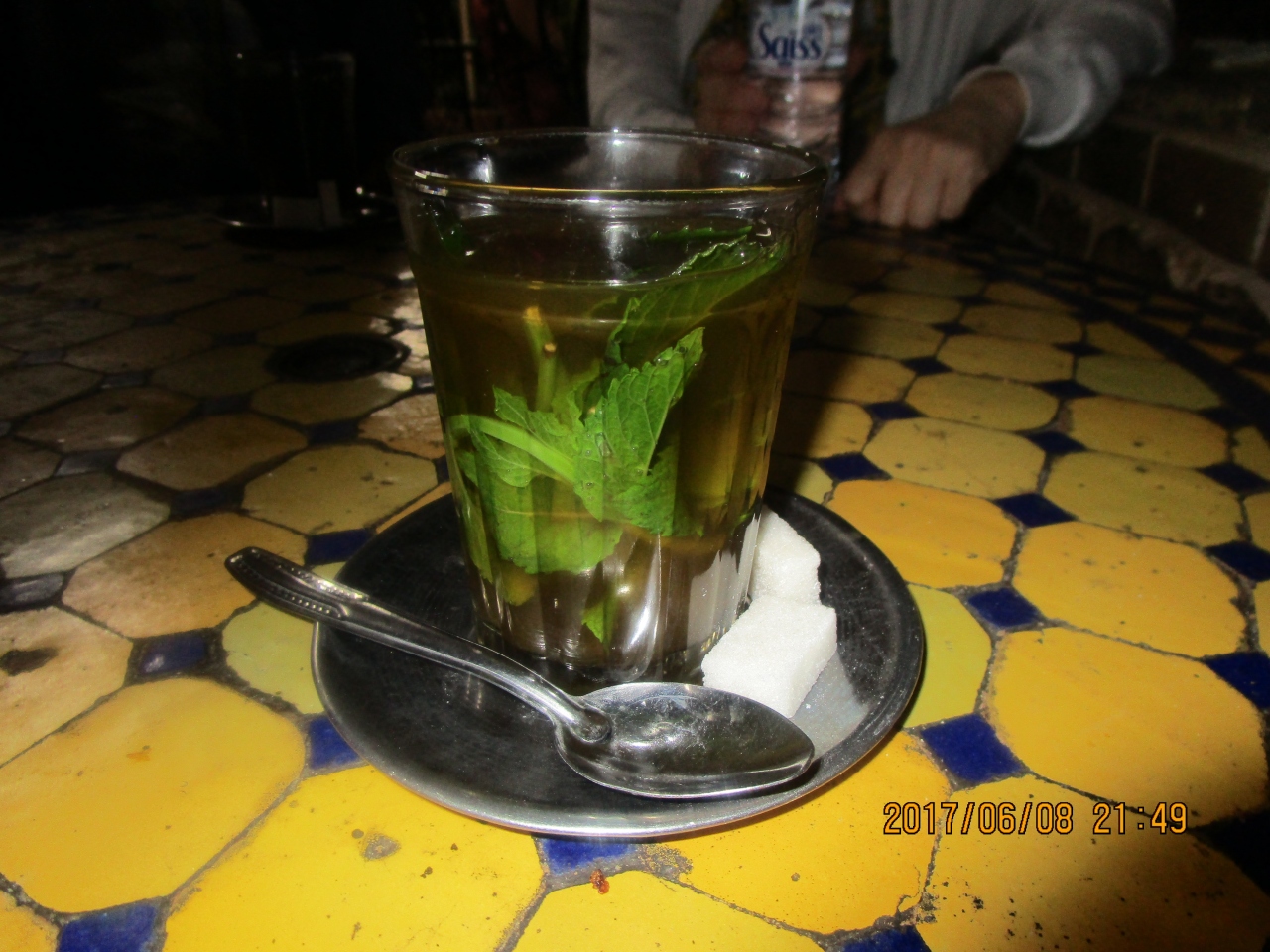 水売り、猿回し、へび使い、賑わう屋台を見ながら「ミントティー」でティータイム。モロッコの雰囲気を楽しみながらゆっくり時間を過ごしました。