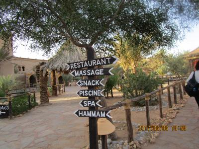 サハラ砂漠のすぐそばにあるホテル。広い敷地に宿泊棟が点在しています。