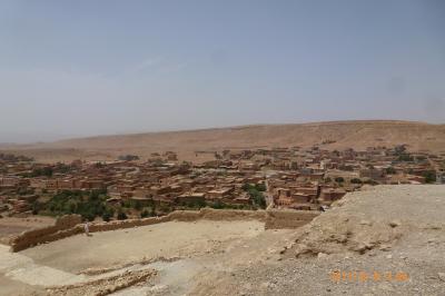 ワルザザードのホテルから60分程。遠くにアイト・ベン・ハッドゥの小高い丘が見えてきます。