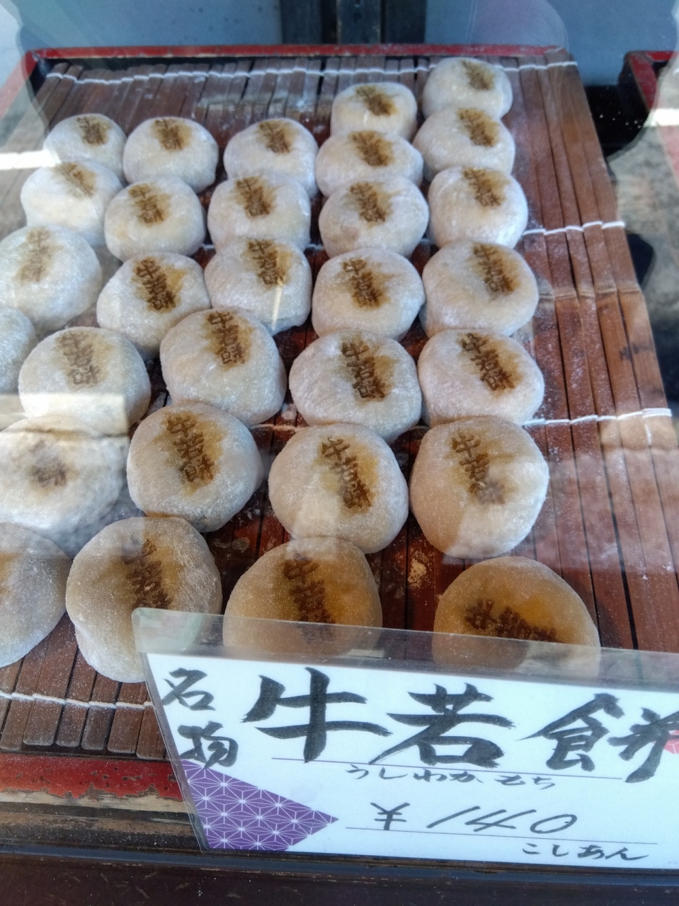 鞍馬駅を降りて間もなく左手にあるお店。名物は牛若餅との口コミを見て購入しましたが、かなり小さめの一口サイズの餅で中にあんこか入っています。牛若餅と焼き印があります。一個140円とはかなり高いです。他には鞍馬名産な木の芽煮もあります。