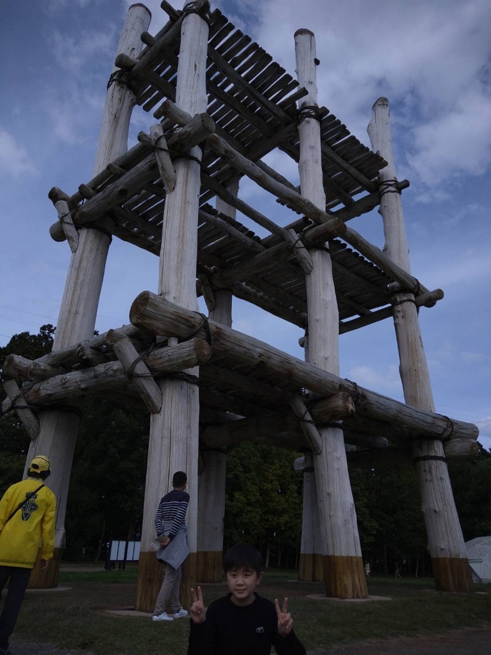 世界遺産に登録された縄文遺跡群。三内丸山は海からかなり離れた地域になっています。大型掘立柱建物跡は 地面に穴を掘り、柱を建てて造った建物跡です。柱穴にはクリの木柱が6本あり長方形の大型高床建物と考えられます。素晴らしい遺産です。