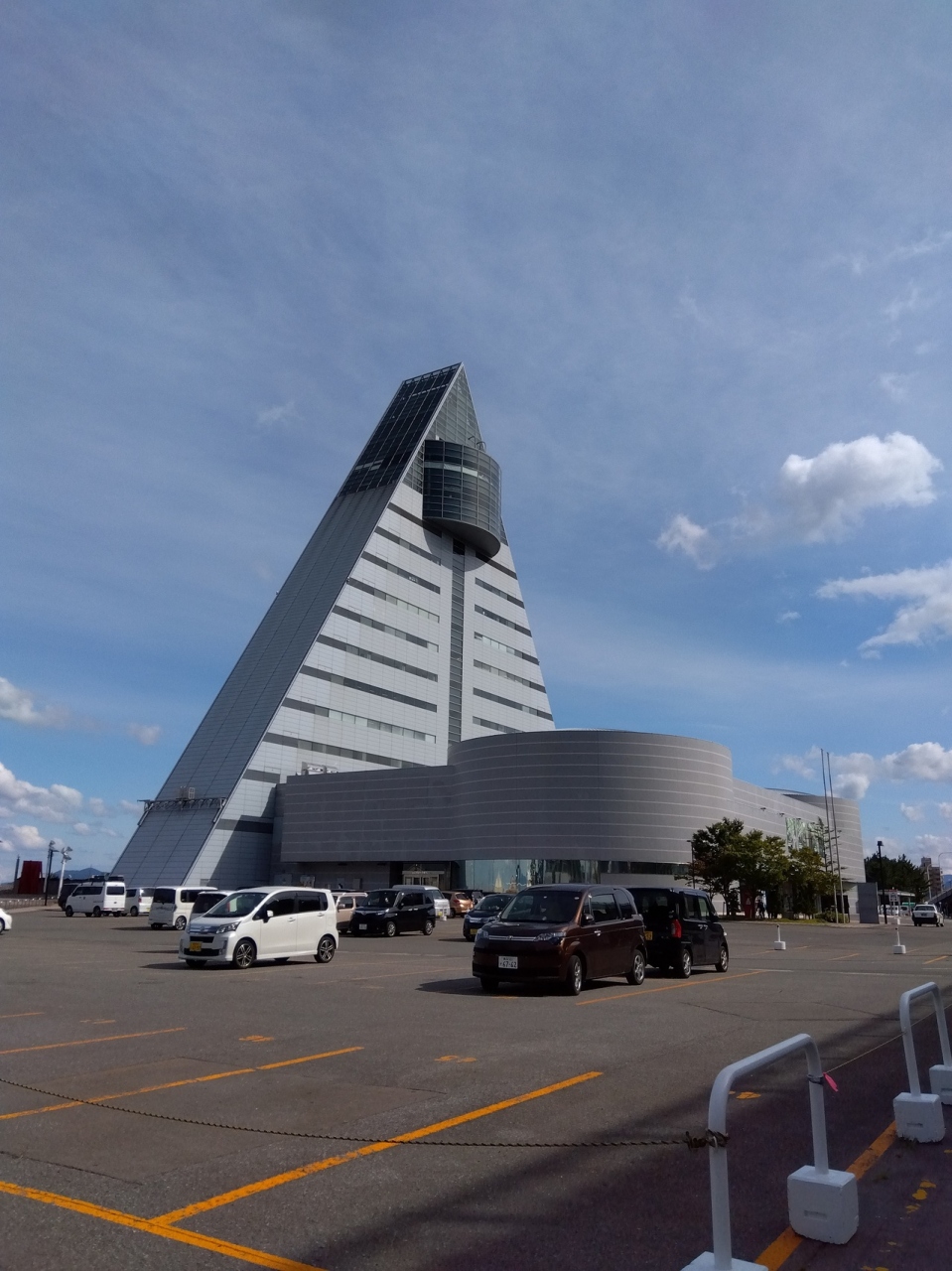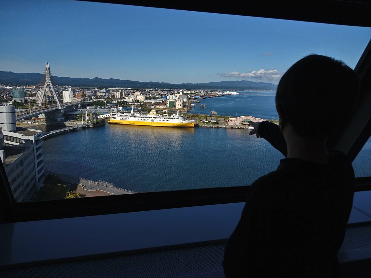 アスパムは海に面して立つ三角形の建物で、中に入れば一階に青森県内各市町村の銘菓、名物が揃うお土産屋があります。インフォメーションで展望台へのチケットを買って是非登ってみて下さい。眼下に広がるむつ湾、八甲田丸、ベイブリッジ、ねぶたの家ワラッセなど素晴らしい景色が見られます。