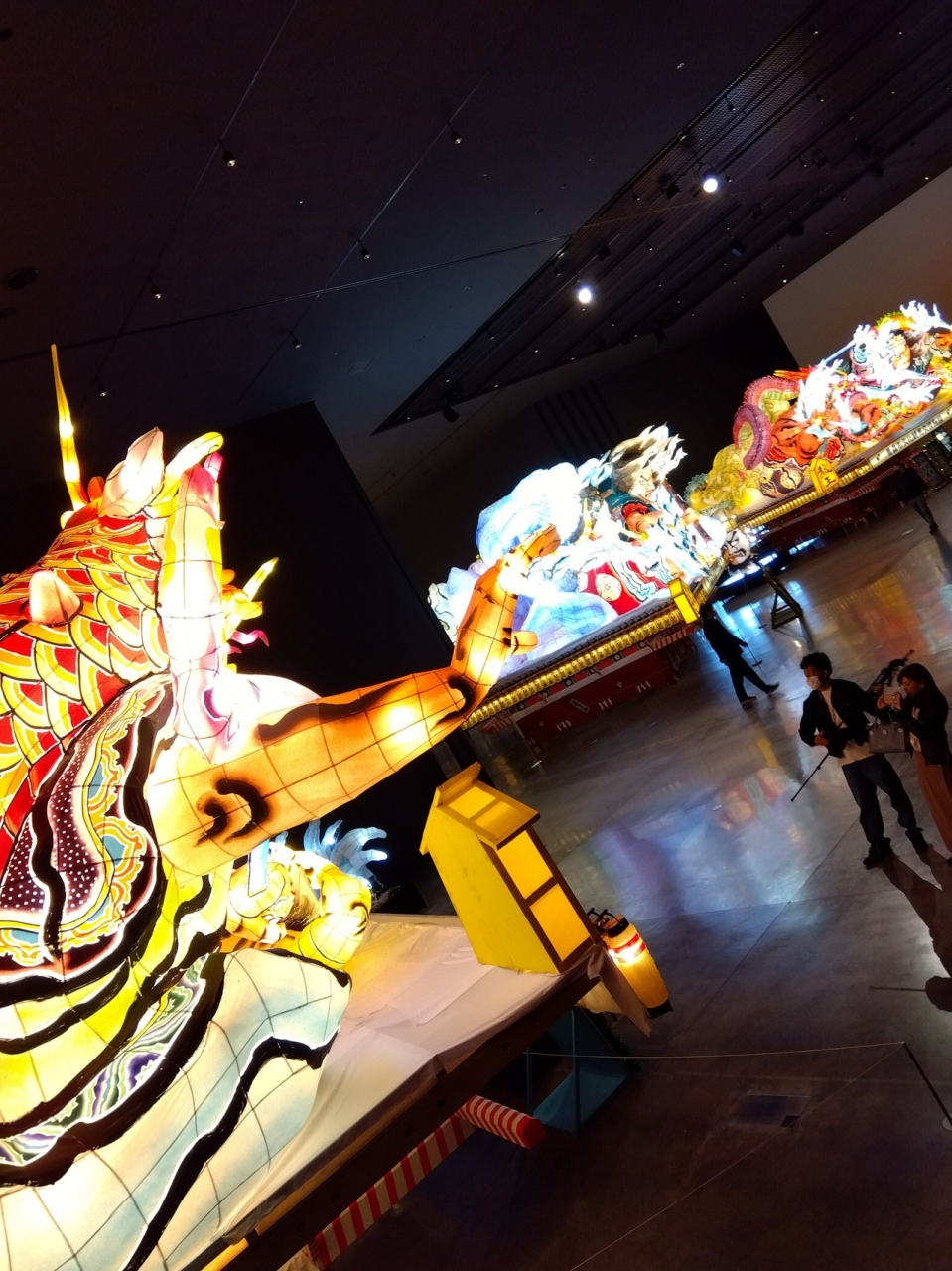 青森駅すぐそばにねぶたの家ワラッセがあります。外観は赤、中には大型ねぶたが数台陳列してあり間近に見ることが出来て、ねぶた完成までの製造過程が良くわかります。ねぶた太鼓やはねと体験もでき一年中ねぶたが見られる施設です。