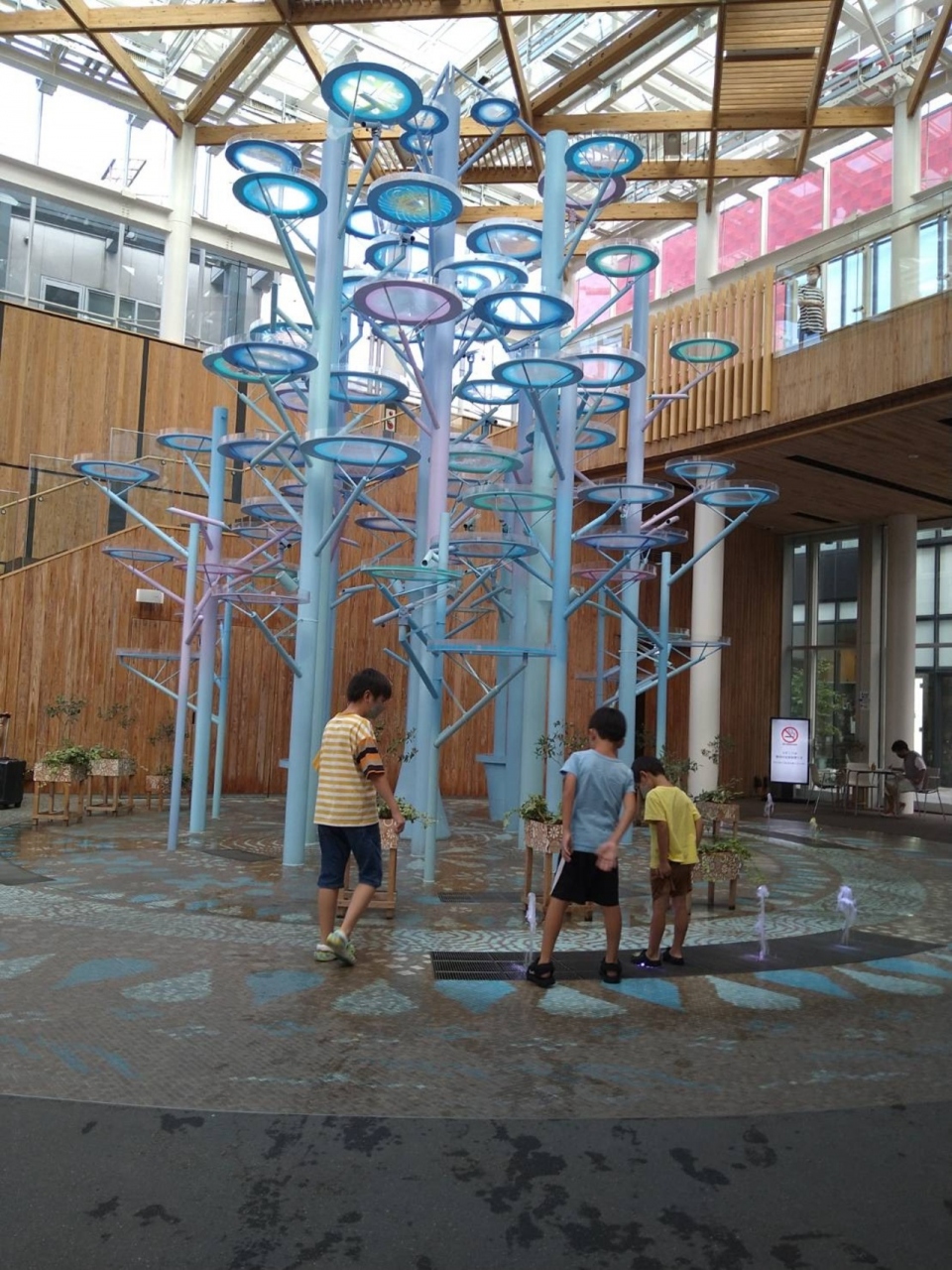 八戸市三日町。中心街にあります。向かいにはポータルミュージアムはっちかあり街の活性化の重要な拠点です。広場には水辺があり真夏には子供たちの憩いの場になっています。ストリートピアノかありたまに演奏している場面にも会えます