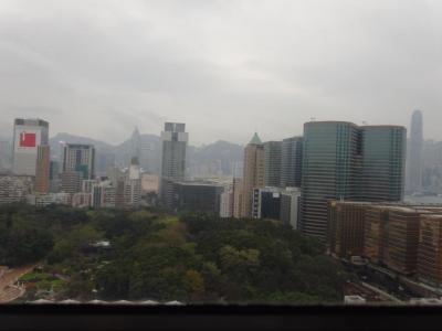 チェックイン時に高層階の公園側をリクエストしたら、窓から九龍公園と遠くに香港島が見えました。