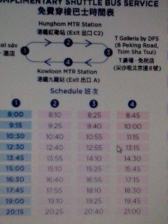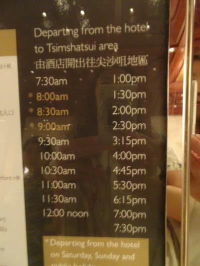 チムサーチョイ方面行きのシャトルバスがありますが、ホテル発しか乗ることができません。行き先の地図と時刻表の写真を撮っておきました。- 旅行時期